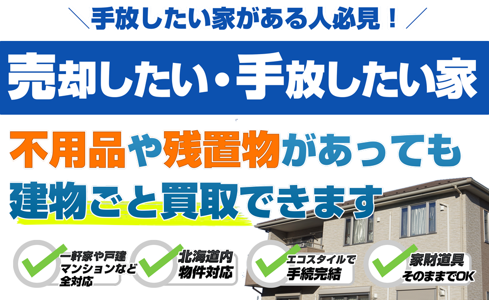 滝川/深川市内・近郊で残置物や不用品回収・片付け処分をご希望でしたら「生活応援エコスタイル」へおまかせください マンション以外にも一軒家やアパート・マンションの不用品回収・片付け処分もご相談ください! …