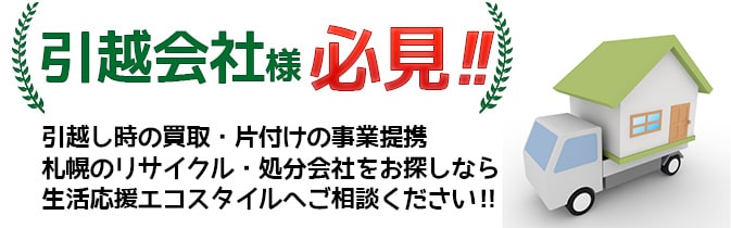 北海道・札幌市で買取・片付け処分ができる会社をお探しでしたら「生活応援エコスタイル」へご連絡ください!事業提携しませんか?