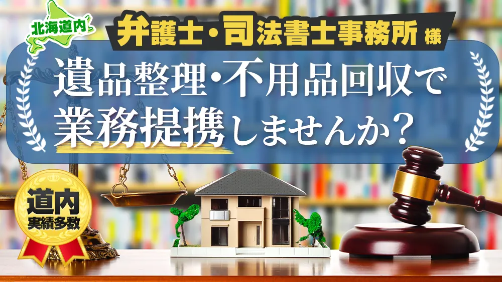 北海道内の「弁護士・司法書士」事務所様、相続に関した物件整理や、破産管財人になった際に必要な家の片付け・不用品回収ができる会社をお探しではありませんか?