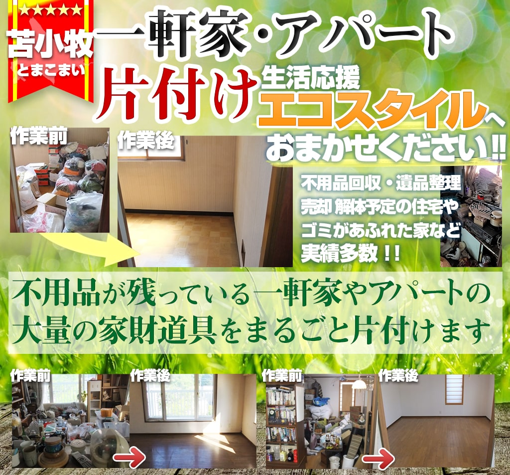 苫小牧の一軒家片付けやマンション片付けは生活応援エコスタイルへお任せください!
